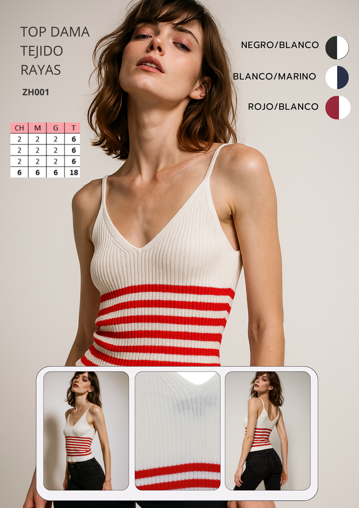 TOP DAMA TEJIDO CON RAYAS ZH001